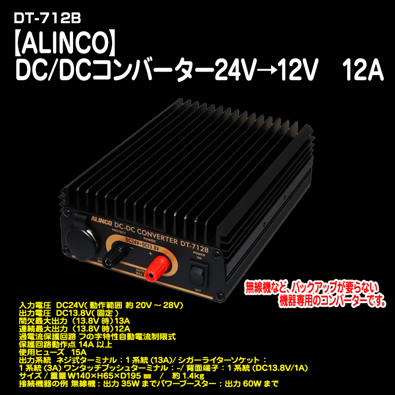 【ALINCO】DC/DCコンバーター 24V→12V 12A DT-712B
