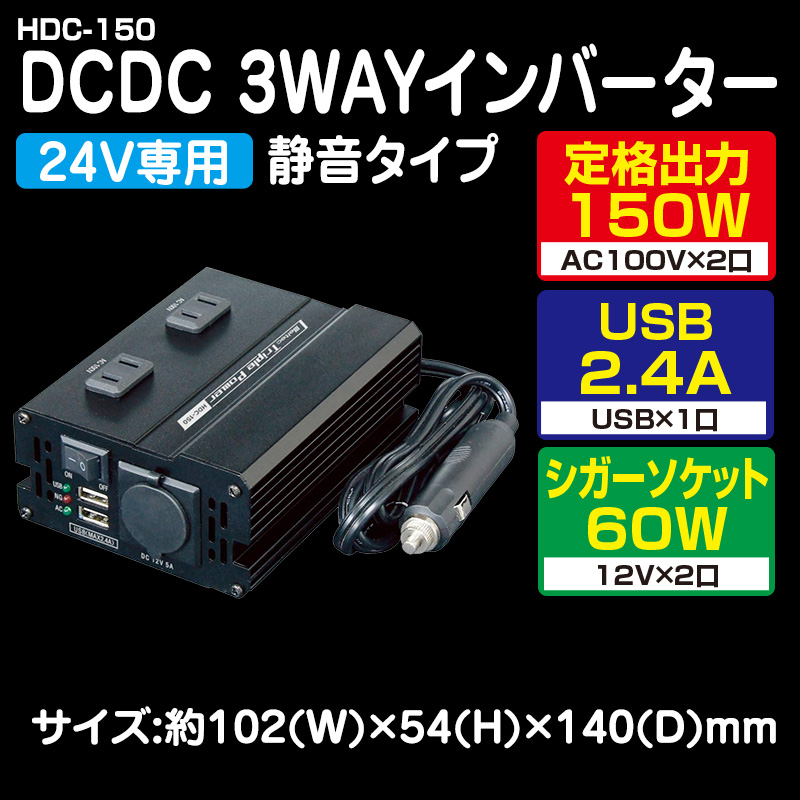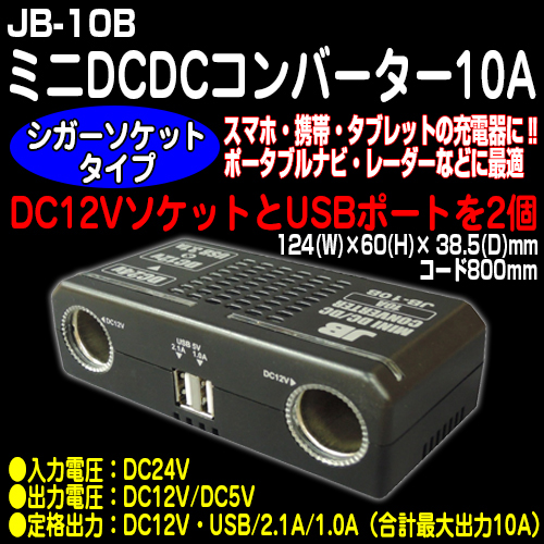 ミニDC-DCコンバーター10A(シガーソケット2口/USB2口)24V専用※JB-10B