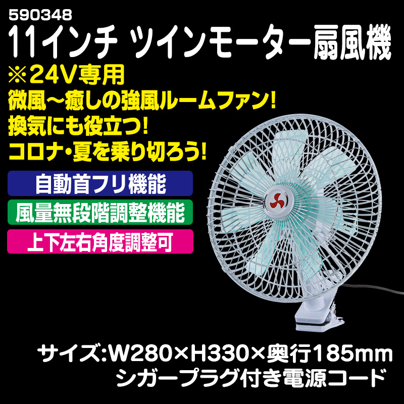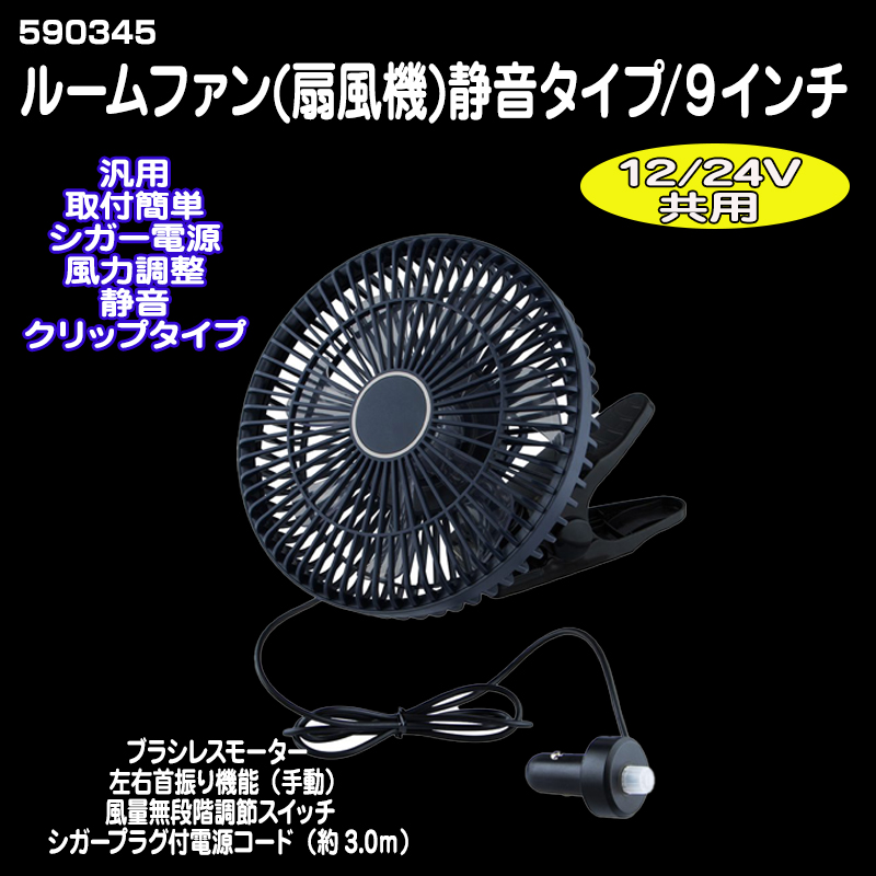 ルームファン(扇風機)静音タイプ/9インチ クリップ固定式 12/24V共用#590345