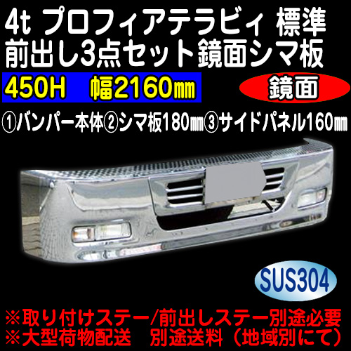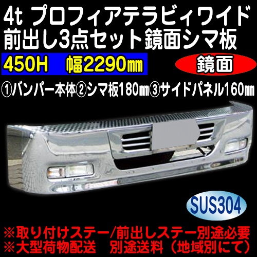 JETテラヴィ4t標準450Hバンパー前出し3点セット 鏡面ステンレスシマ板仕様