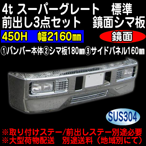 JETスーパーグレート4t標準450Hバンパー前出し3点セット 鏡面ステンレスシマ板仕様