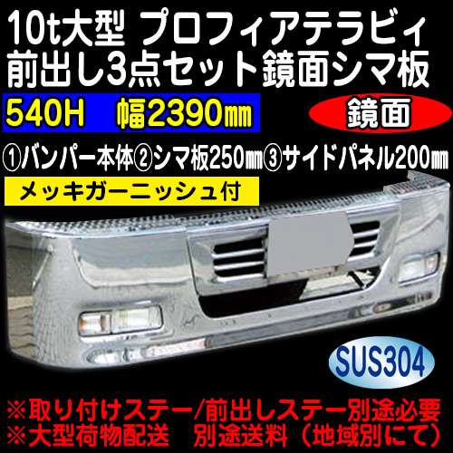 テラヴィ10t大型540Hバンパー前出し3点セット 鏡面ステンレスシマ板仕様