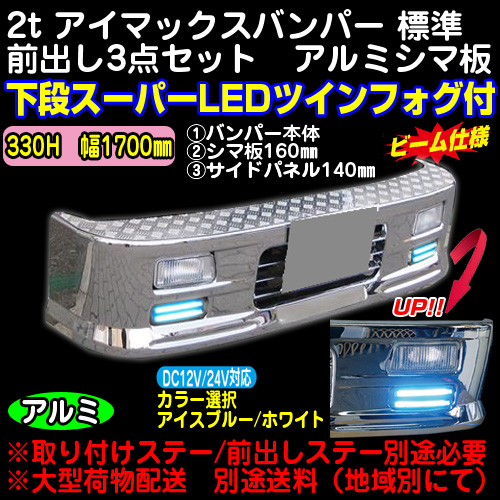 下段スーパーLED TWIN FOG アイマックス前出しバンパーセット標準 アルミシマ板仕様 カラー:アイスブルー/ホワイト(12・24V共用) [装着例あり]