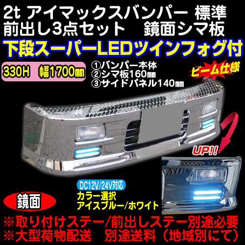 下段スーパーLED TWIN FOG アイマックス前出しバンパーセット標準 鏡面ステンレスシマ板仕様 カラー:アイスブルー/ホワイト(12・24V共用) [装着例あり]