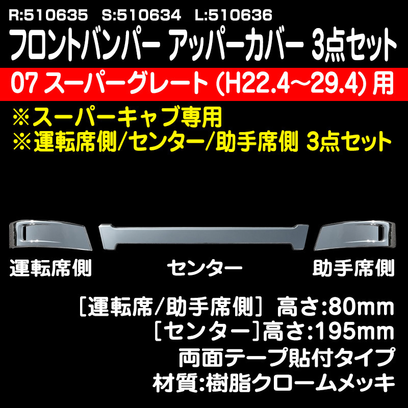07スーパーグレート[スーパーキャブ用] フロントバンパー アッパーカバー 3点セット #510635/510634/510636