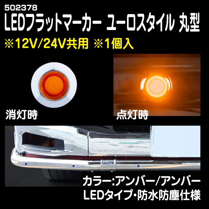 LEDフラットマーカー ユーロスタイル 丸型 アンバー/アンバー 12/24V共用 #502378