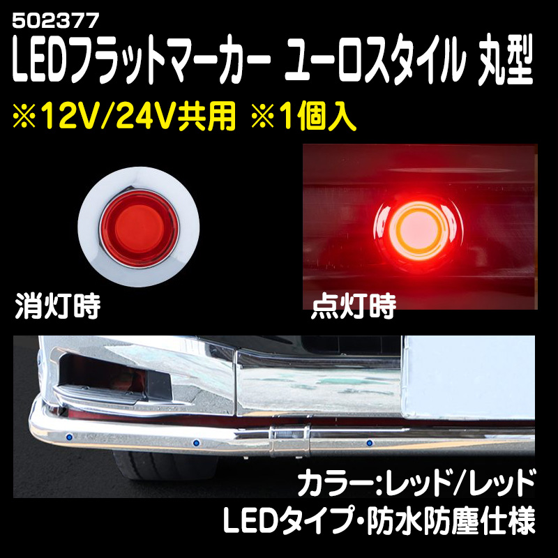 LEDフラットマーカー ユーロスタイル 丸型 レッド/レッド 12/24V共用 #502377