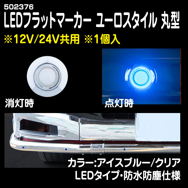 LEDフラットマーカー ユーロスタイル 丸型 アイスブルー/クリア 12/24V共用 #502376
