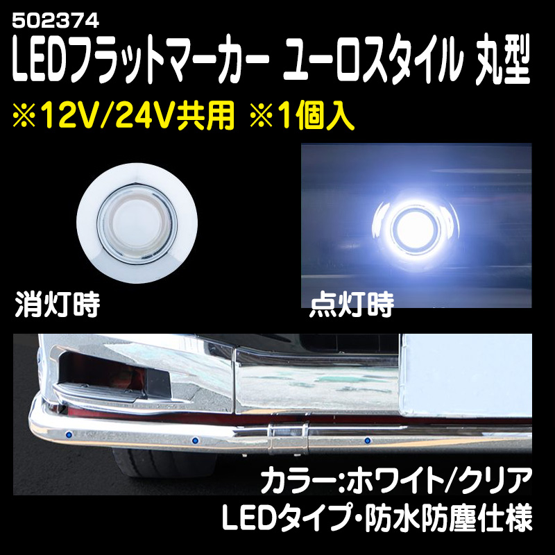 LEDフラットマーカー ユーロスタイル 丸型 ホワイト/クリア 12/24V共用 #502374