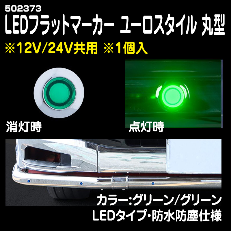LEDフラットマーカー ユーロスタイル 丸型 グリーン/グリーン 12/24V共用 #502373