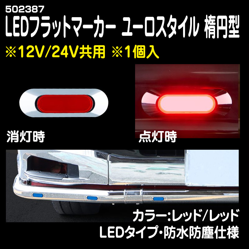 LEDフラットマーカー ユーロスタイル 楕円型 レッド/レッド 12/24V共用 #502387