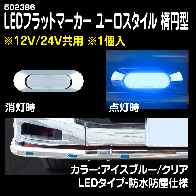 LEDフラットマーカー ユーロスタイル 楕円型 アイスブルー/クリア 12/24V共用 #502386