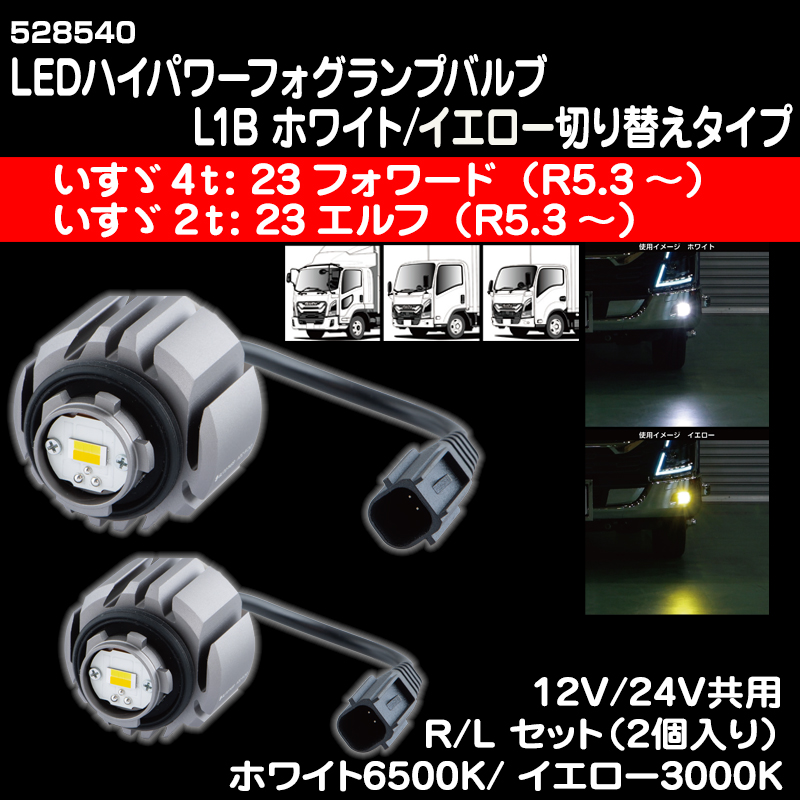 純正LEDフォグ用ハイパワーL1Bランプ 切り替え【ホワイト/イエロー】いすゞ4t:’23フォワード(R5.3~) いすゞ2t:’23エルフ(R5.3~)2個入り 12V/24V共用