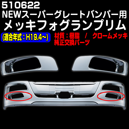 フォグランプリム クロームメッキ スーパーグレートバンパー 600H/540H用 大型車用 (H8.6〜19.3)