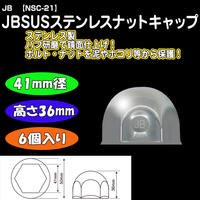 JBステンレスナットキャップ 41mm/高さ36mm(6個入)【SNC-21】