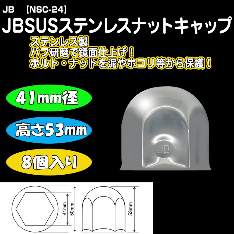 JBステンレスナットキャップ 41mm/高さ53mm(8個入)【SNC-24】