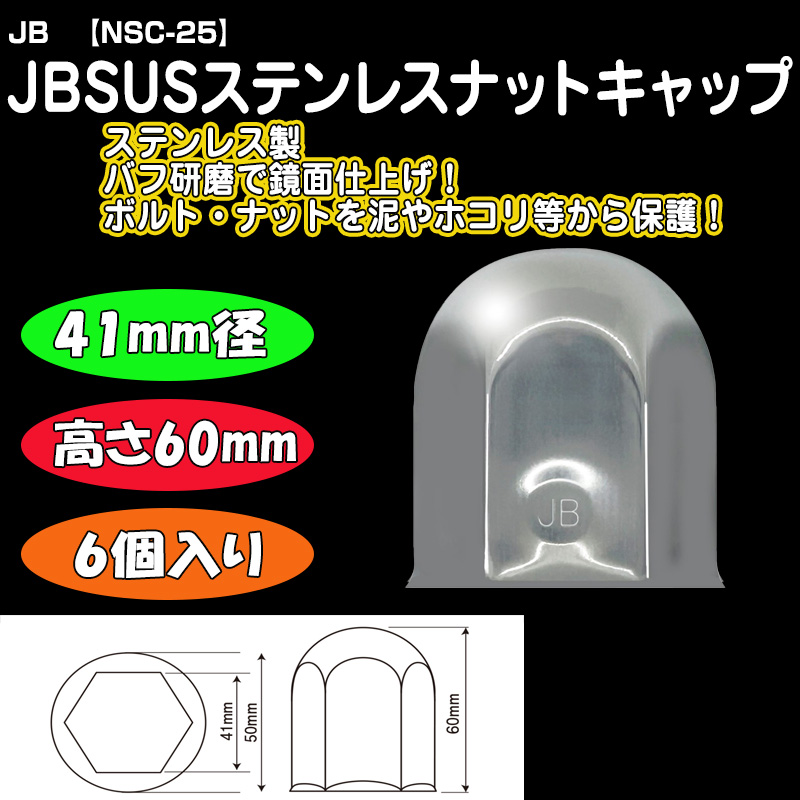 JBステンレスナットキャップ 41mm/高さ60mm(6個入)【SNC-25】