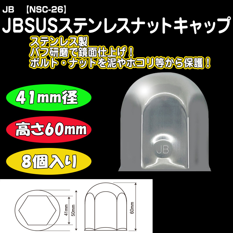JBステンレスナットキャップ 41mm/高さ60mm(8個入)【SNC-26】