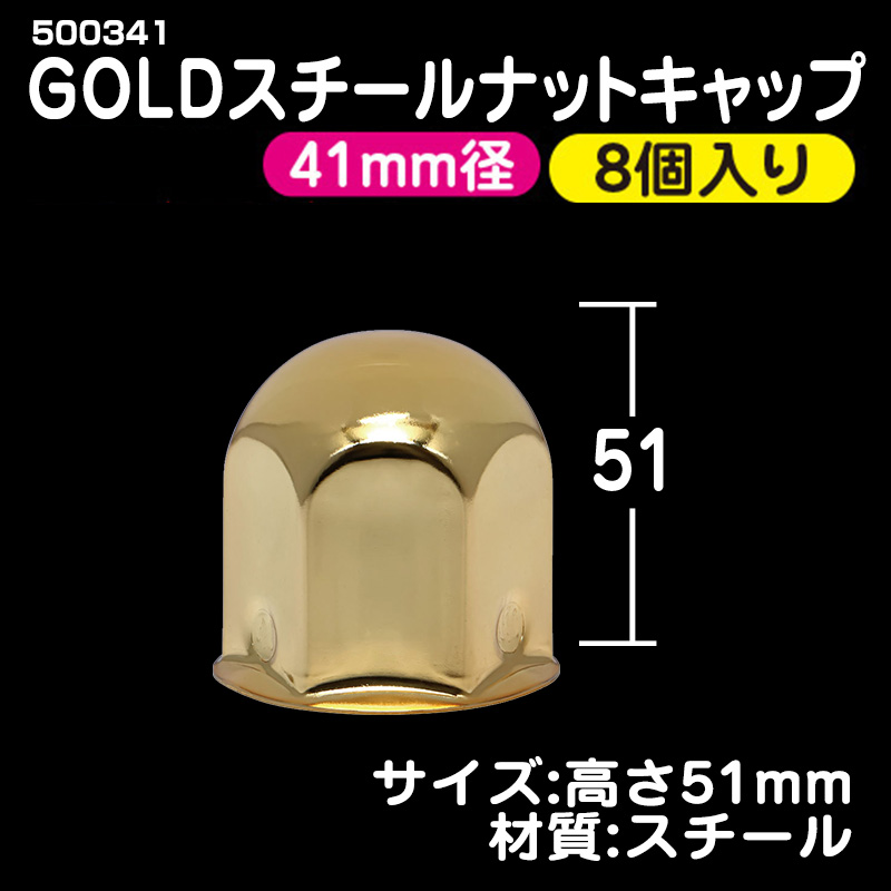 JET丸型ゴールドナットキャップ 41mm(高さ51mm)8個入り:スチール製