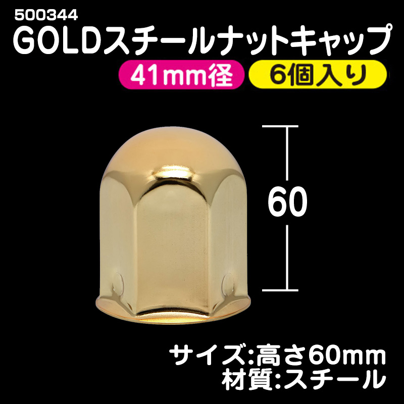 JET丸型ゴールドナットキャップ 41mm(高さ51mm)6個入り:スチール製
