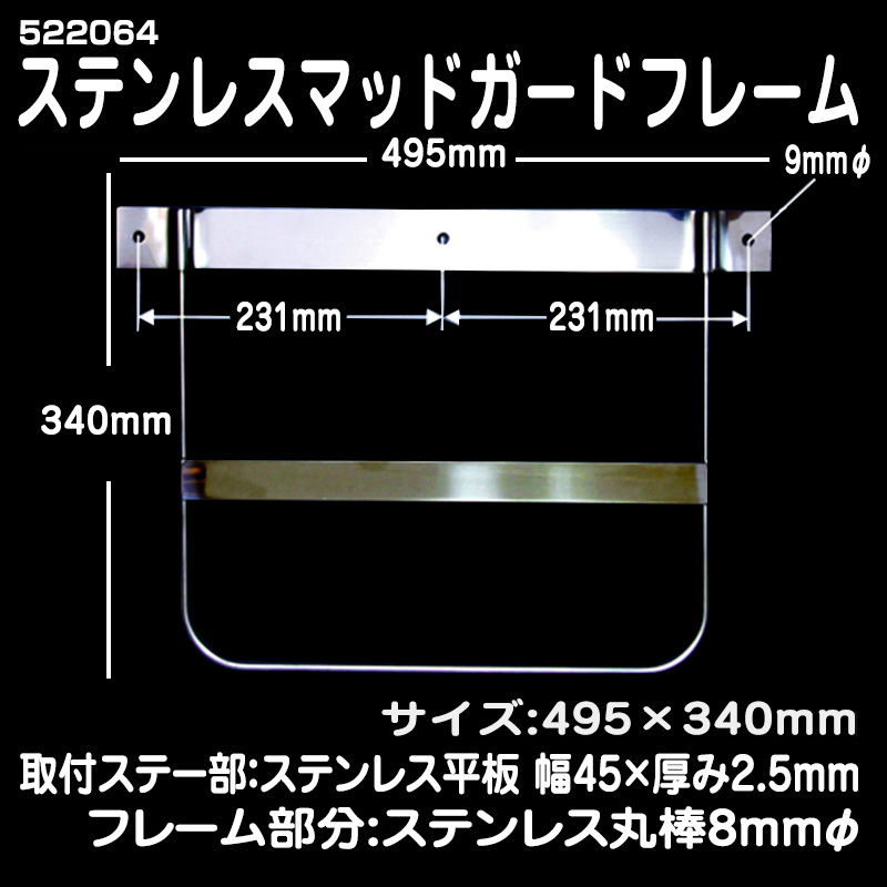 ステンレスマッドガードフレーム(ステー)(495mm×340mm) 1本価格 #522064