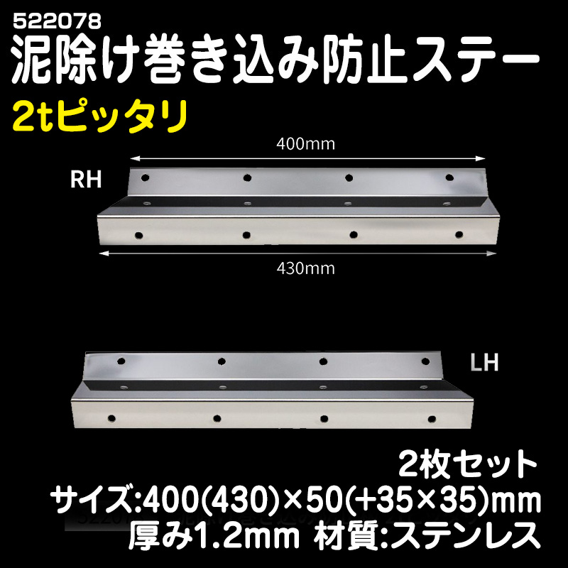 泥除け巻き込み防止ステーステンレス 2tピッタリ 幅400mm×50mm L/Rセット #522078