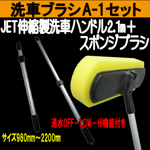 洗車A-1セット≪伸縮ハンドル(通水)2.1m+スポンジヘッド≫ 洗車ブラシ