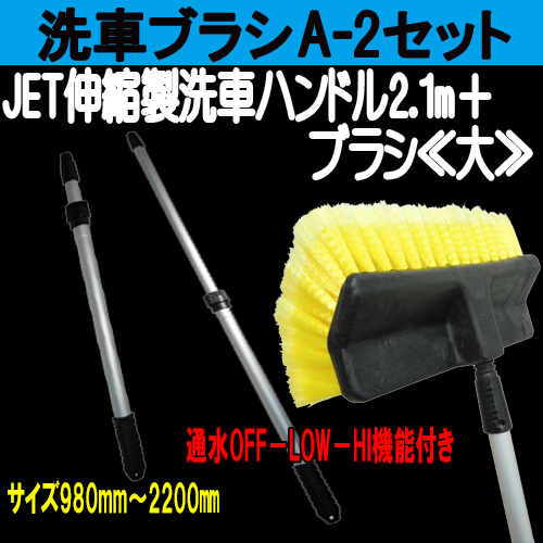 洗車A-2セット≪伸縮ハンドル(通水)2.1m+ブラシ大≫ 洗車ブラシ