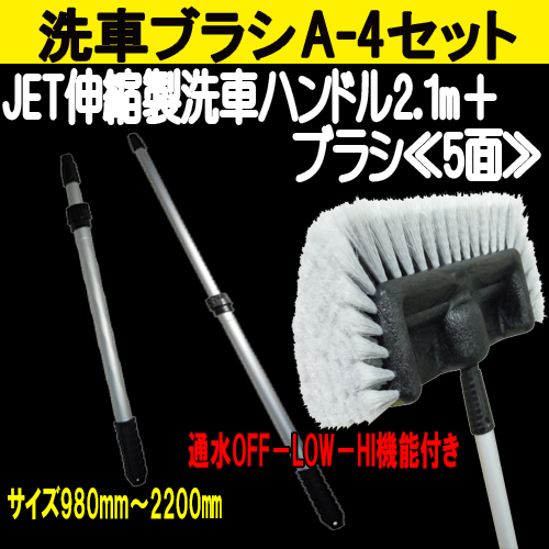 洗車A-4セット≪伸縮ハンドル(通水)2.1m+ブラシ5面タイプ≫ 洗車ブラシ