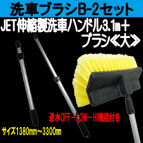 洗車B-2セット≪伸縮ハンドル(通水)3.3m+ブラシ大≫ 洗車ブラシ (個人宅不可/代引き不可)