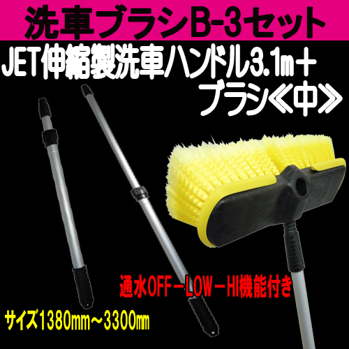 洗車B-3セット≪伸縮ハンドル(通水)3.3m+ブラシ中≫ 洗車ブラシ (個人宅不可/代引き不可)