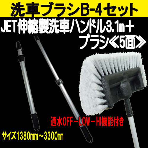 洗車B-4セット≪伸縮ハンドル(通水)3.1m+ブラシ5面タイプ≫ 洗車ブラシ