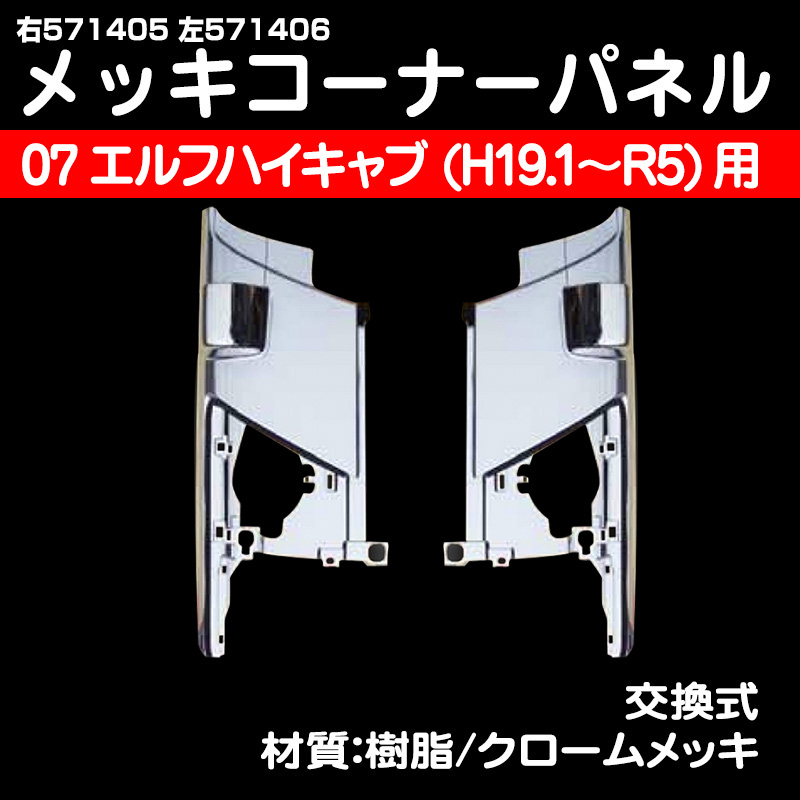 JET メッキコーナーパネル 07エルフローキャブ(H19.1〜R5)L/R(交換式)【奥裏カバー付】
