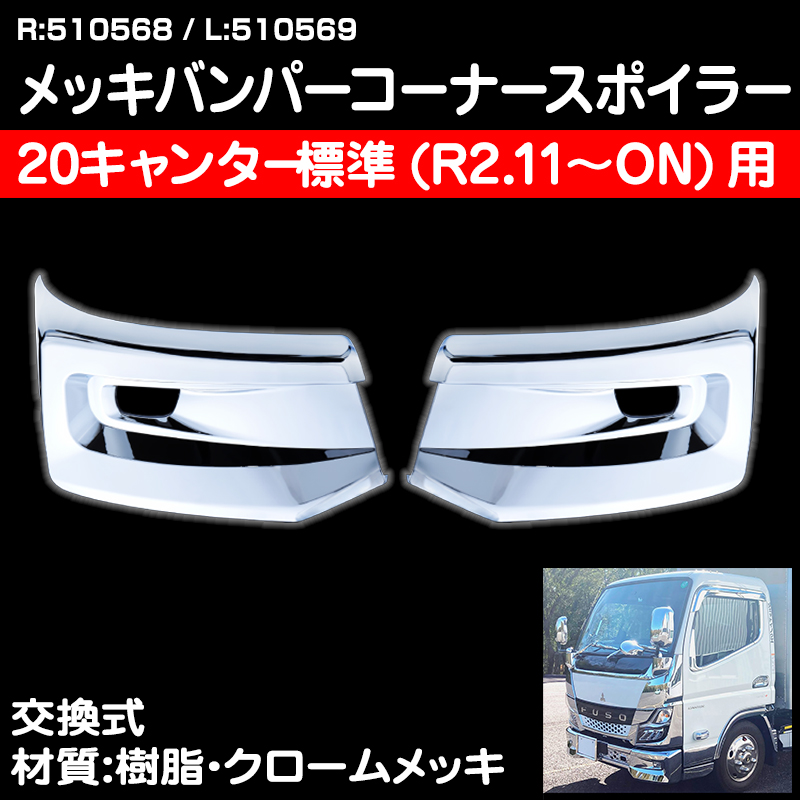 20キャンター メッキバンパーコーナースポイラー 標準車用 R/L【片側購入可能】