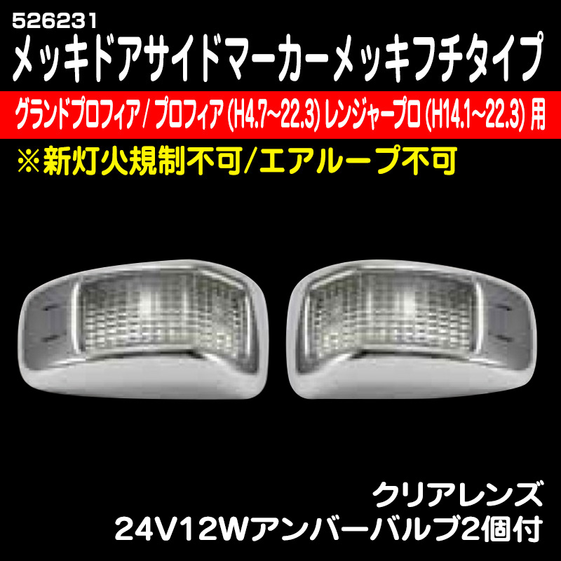 メッキドアサイドマーカーメッキフチタイプ(プロフィア・NEWプロフィア・レンジャープロ)灯火規制不可 クリアレンズ