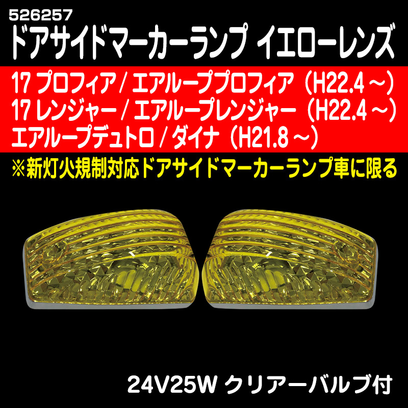 ドアサイドマーカーBタイプ イエローバルブ 17プロフィア(H29.5〜ON) ・17レンジャー(H29.5〜ON) ・エアループデュトロ/ダイナ(H21.8~)(灯火規制対応品)