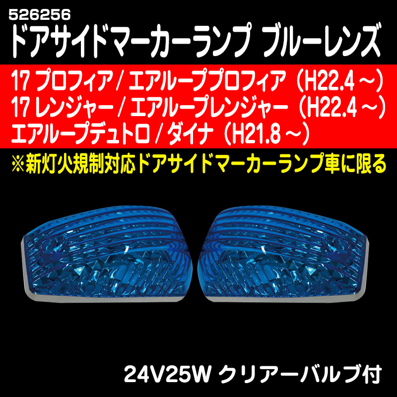 ドアサイドマーカーBタイプ ブルーレンズ 17プロフィア(H29.5〜ON) ・17レンジャー(H29.5〜ON) ・エアループデュトロ/ダイナ(H21.8~)(灯火規制対応品)