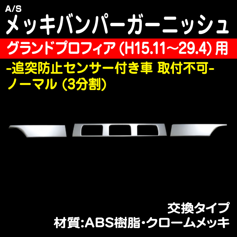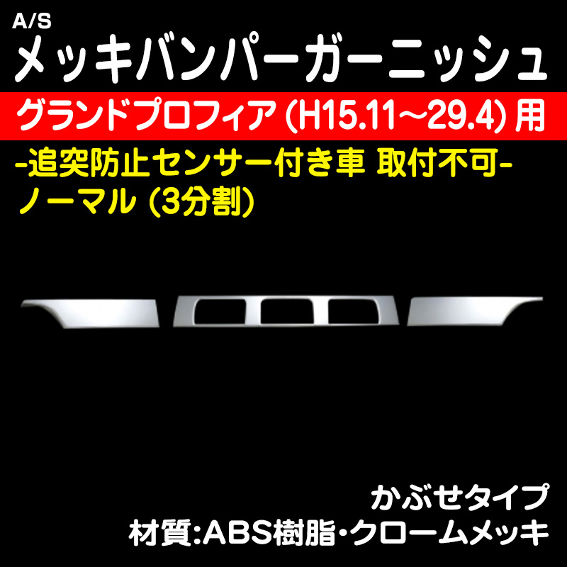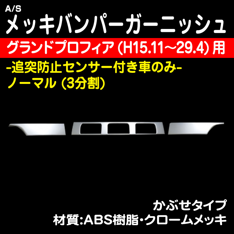 メッキバンパーガーニッシュ ノーマルタイプ 3分割[追突防止センサー付 取付不可]グランドプロフィア R/L