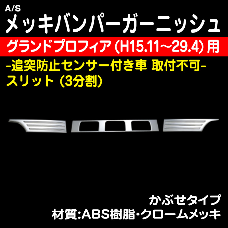 メッキバンパーガーニッシュ スリットタイプ(3分割)[追突防止センサー付 取付不可]グランドプロフィア R/L