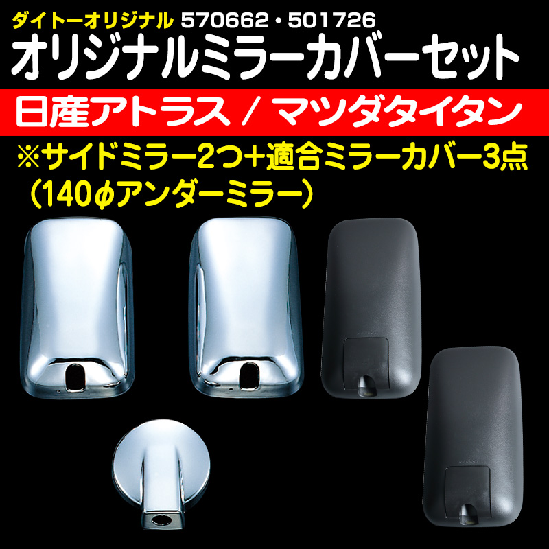 オリジナルミラーカバーセット(日産アトラス・マツダタイタン) サイドミラー2つ+適合ミラーカバー3点(140パイアンダーミラー)