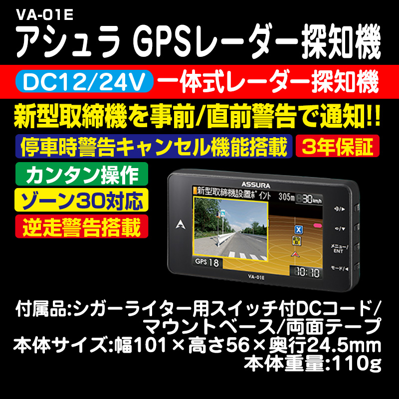【12/24V共用】VA-01E アシュラ 一体式GPSレーダー探知機