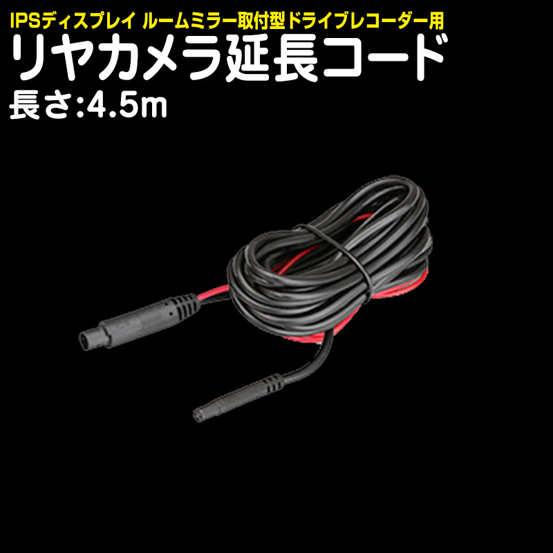 [リアカメラ延長コード]IPSディスプレイ ルームミラー取付型ドライブレコーダー用 4.5m