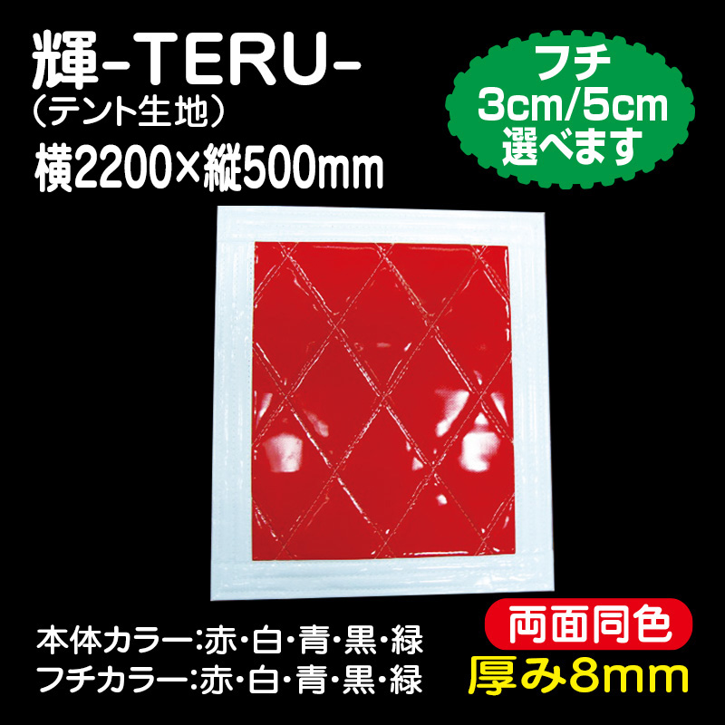【国産】全5色 輝-TERU- (テント生地) 両面同色 サイズ横2200×縦500mm 厚み8mm フチサイズ選択有