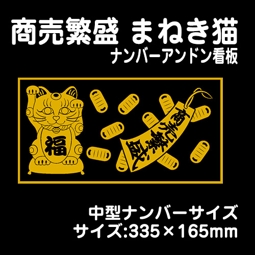 【ナンバーアンドンver】商売繁盛 まねき猫 (黒金)【中型】335×165mm