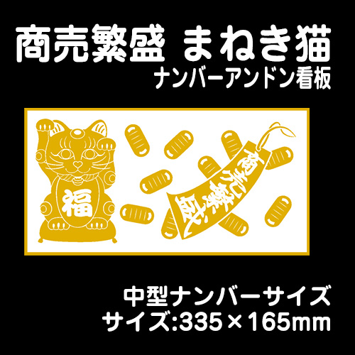 【ナンバーアンドンver】商売繁盛 まねき猫 (白金)【中型】335×165mm