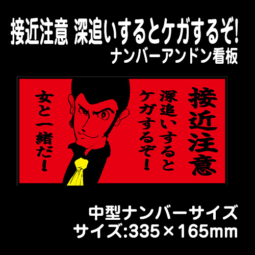 【ナンバーアンドンver】接近注意 深追いするとケガするぞ!【中型】335×165mm