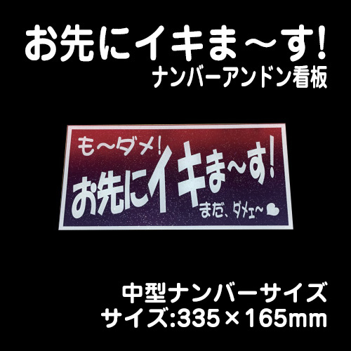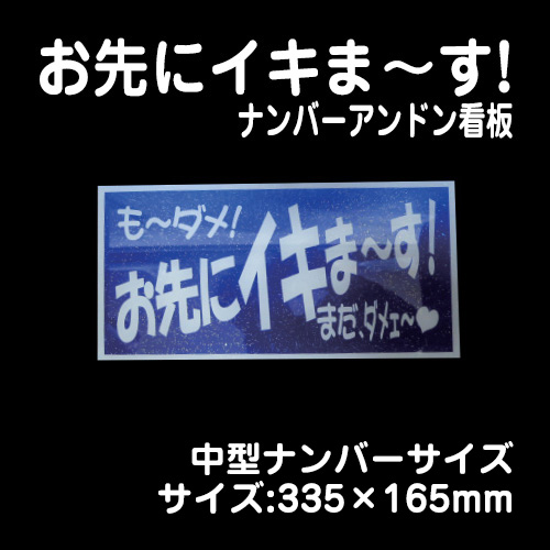 【ナンバーアンドンver】お先にイキま〜す!(青)【中型】335×165mm