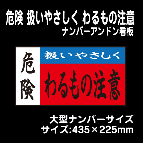 【ナンバーアンドンver】危険 扱いやさしく わるもの注意【大型】435×225mm
