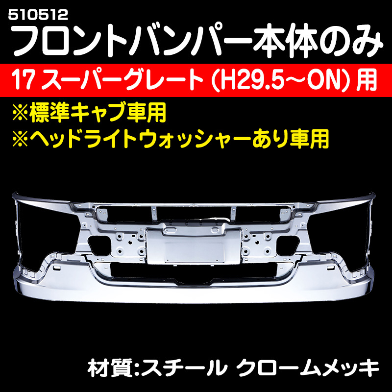 フロントバンパー本体のみ ヘッドライトウォッシャーあり車用 ※穴あり※ (17スーパーグレート標準キャブ用) (メーカー直送手配/個人宅不可/代引き不可) #510512