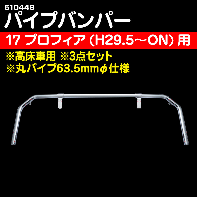 JET製 17プロフィア(エプロン無し車のみ)専用 [高床用]パイプバンパー ※丸パイプ(63.5mmφ)デザイン (ステンレスパイプタイプ) フロントバンパー/左右サイドパイプセット(別途メーカー送料一部地域除く/代引き不可/個人宅不可)610448